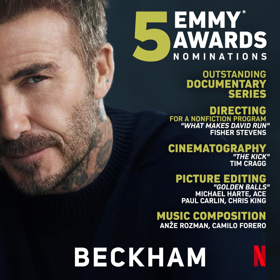Čtyřdílný dokument pro Netflix s názvem BECKHAM získal pět nominací na ceny Emmy. David Beckham je tím ohromen a této pocty si váží.