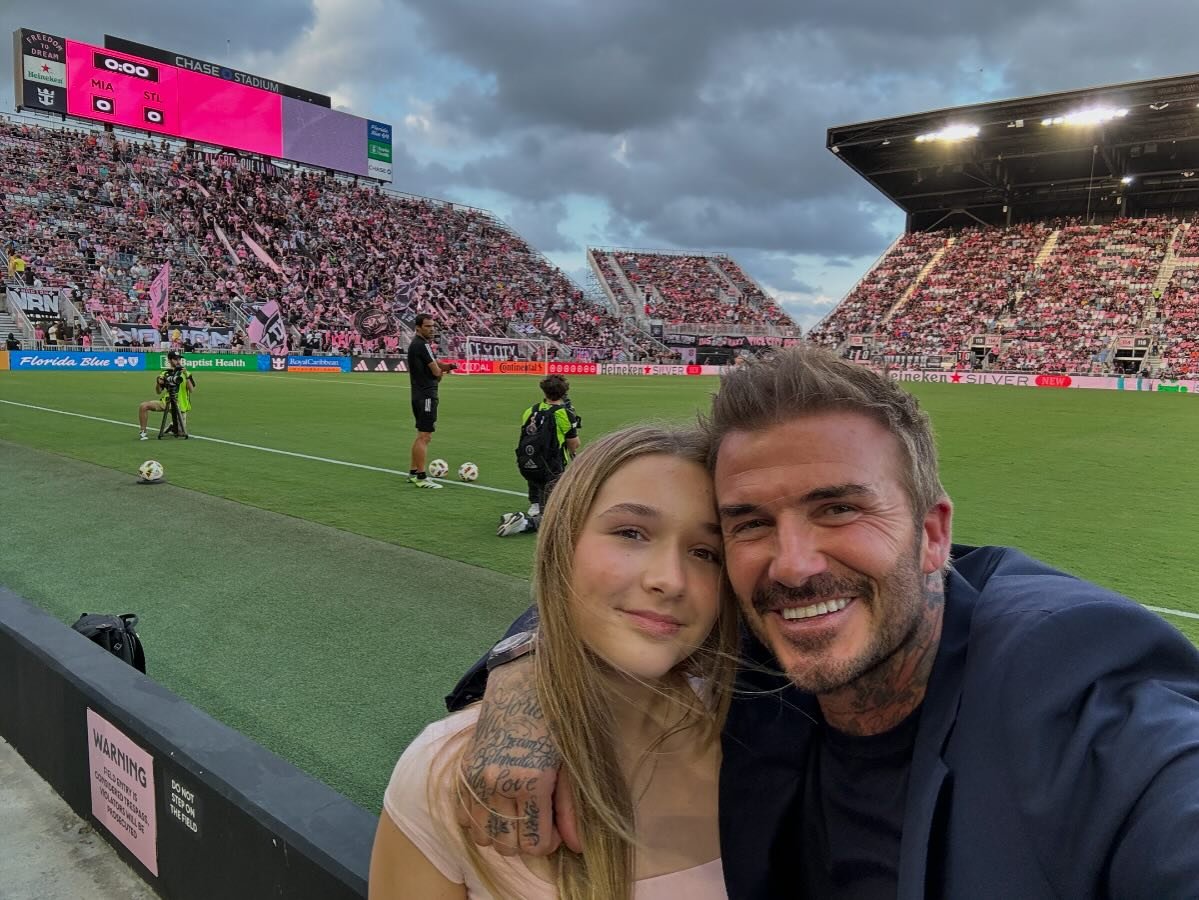 Na utkání nechyběl ani David Beckham s Harper.