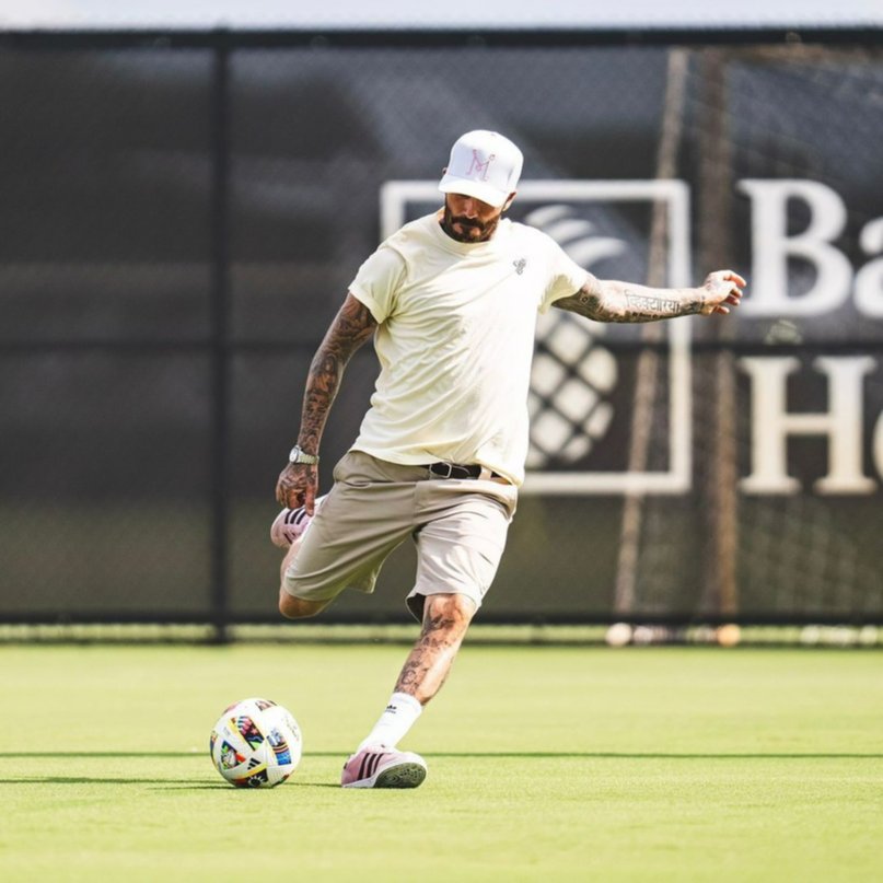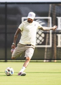 David Beckham se objevil na tréninku Interu Miami, kde si popovídal s Messim a předvedl i pár akcí s míčem.