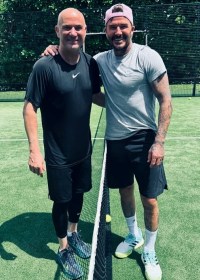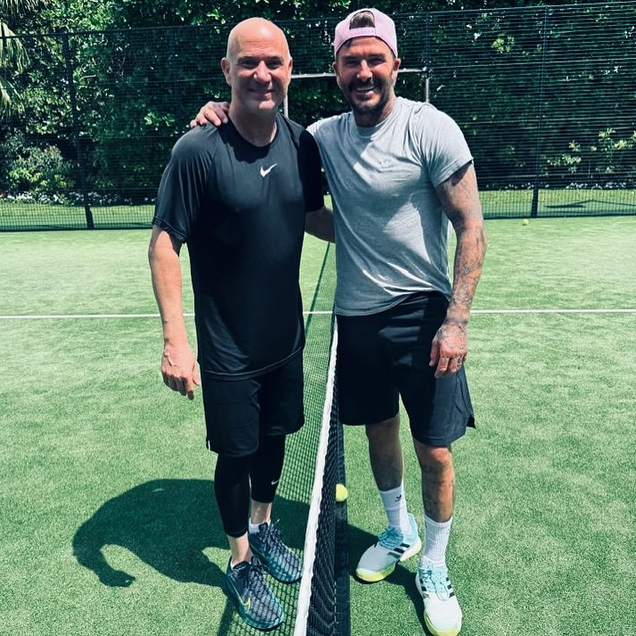 David Beckham zveřejnil na svých sociálních sítích fotku s legendárním tenistou Andre Agassim, se kterým si zahrál pickleball.