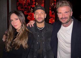 David Beckham zveřejnil na svém Facebooku fotku s Neymarem, se kterým vyrazil v Miami na večeři. Společnost jim dělala i Victoria.