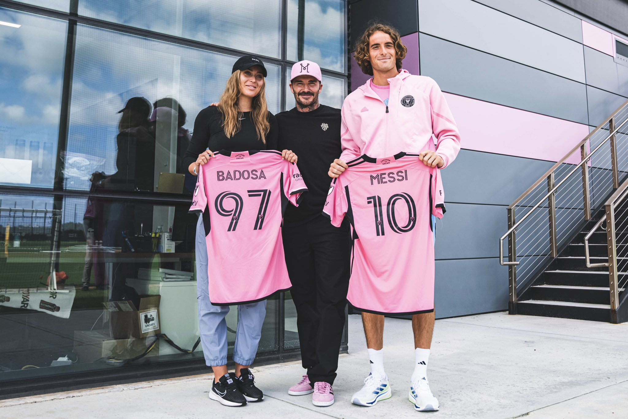 David Beckham se včera objevil na tréninku Interu Miami. Kromě hráčů se zde potkal i s tenisty Badosaovou a Tsitsipasem.