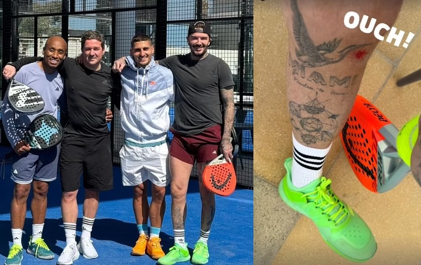 David Beckham si včera zahrál se svými přáteli padel, během kterého si odřel koleno. Při té příležitosti ukázal i nové tetování - nápis MIAMI a nad ním volavku, kterou má Inter Miami ve znaku. Jedním z přátel byl například i bývalý Davidův spoluhráč z PSG Marco Verratti.