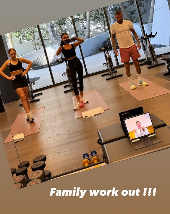 David Beckham, Victoria a Harper strávili včera nějaký čas v posilovně. Victoria to zaznamenala na svém Instagramu.