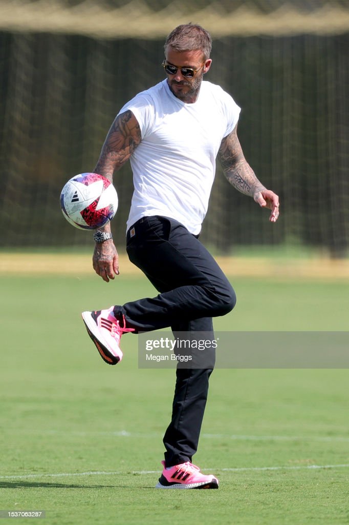 David Beckham se včera ukázal na tréninku Interu Miami, kde si i trochu pohrál s míčem.