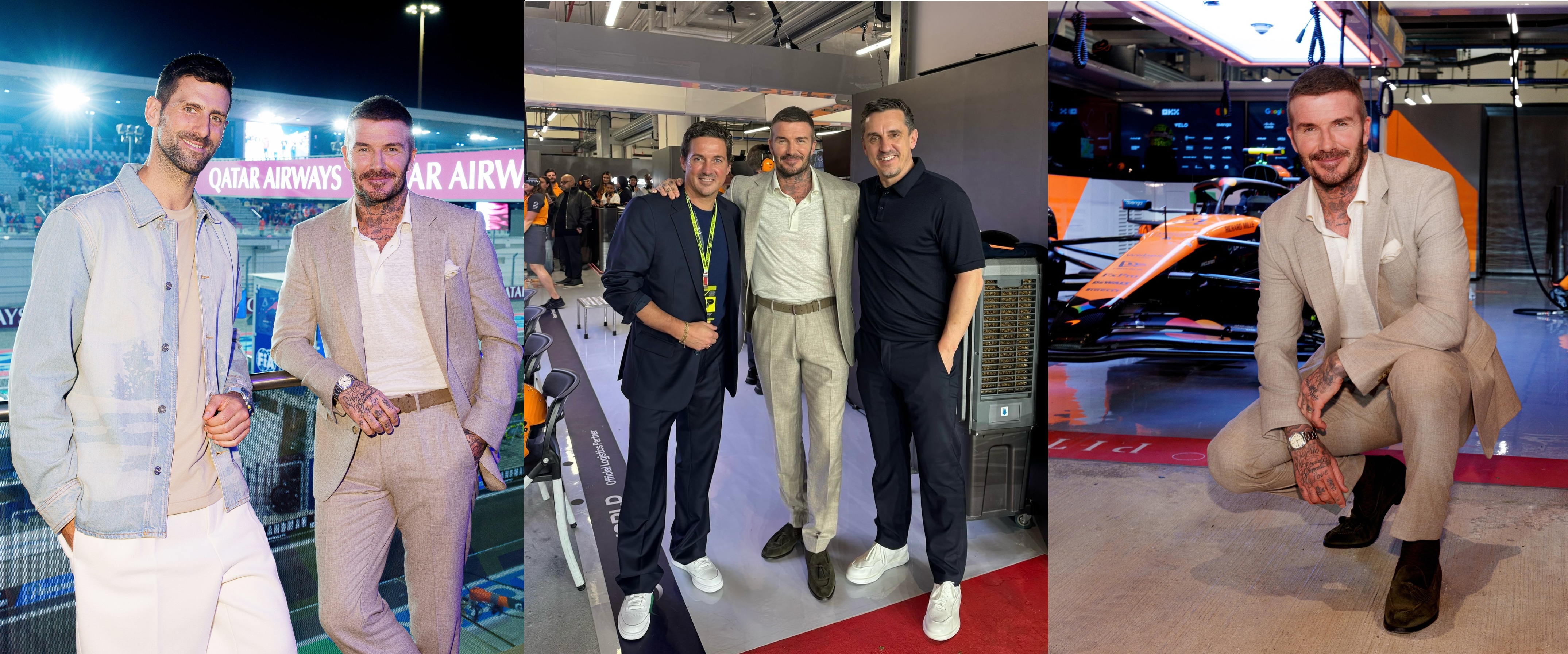David Beckham se včera objevil na Grand Prix formule 1 v Kataru. Zde se potkal například s Novakem Djokovičem.